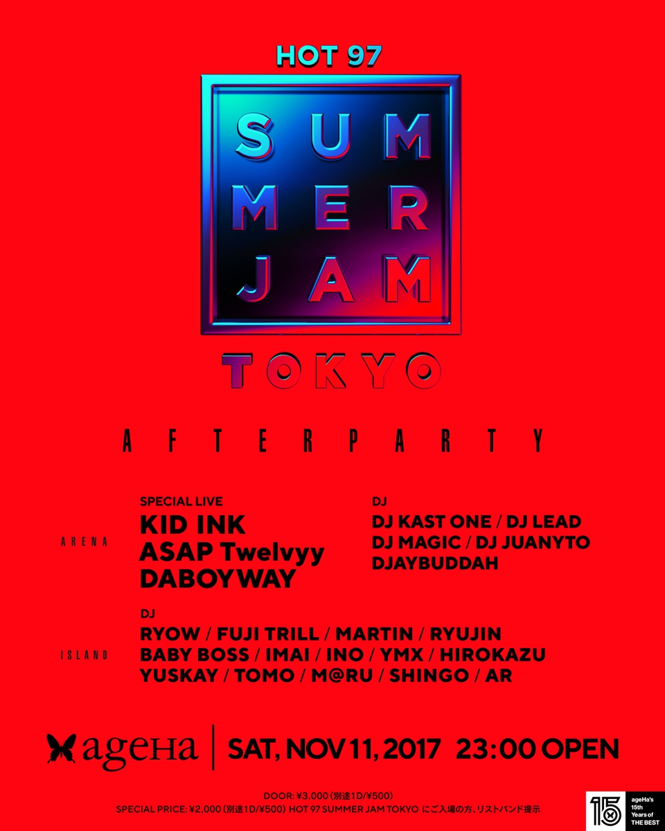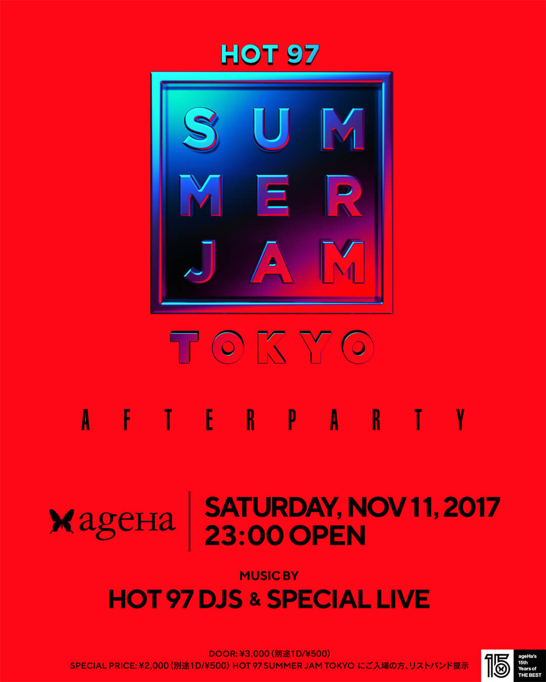 【News】11/11(土) HOT 97 SUMMER JAM TOKYO終了後は、 ageHaにてオフィシャル・アフターパーティー開催決定!
